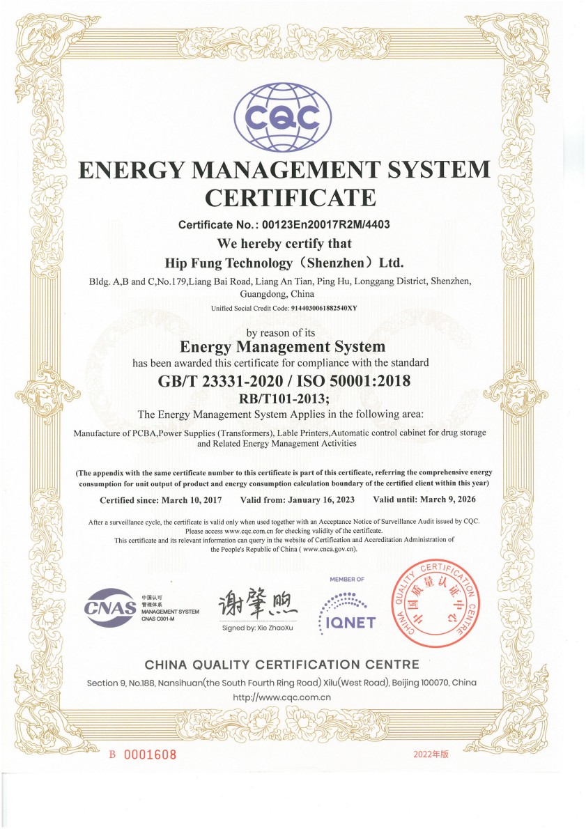 - ISO50001 – 2018 (エネルギー管理システム認証証明書)