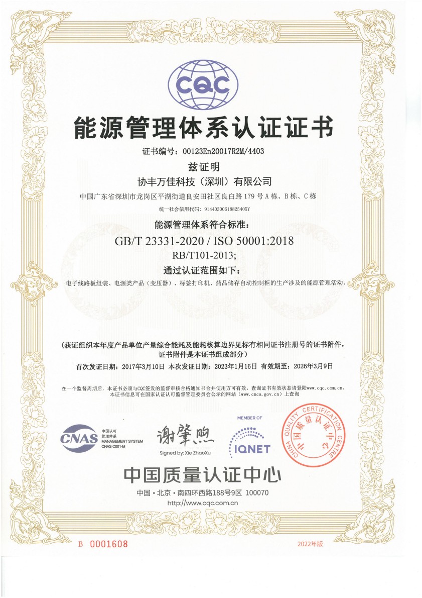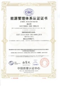 - ISO50001 – 2018 (能源管理体系认证证书)